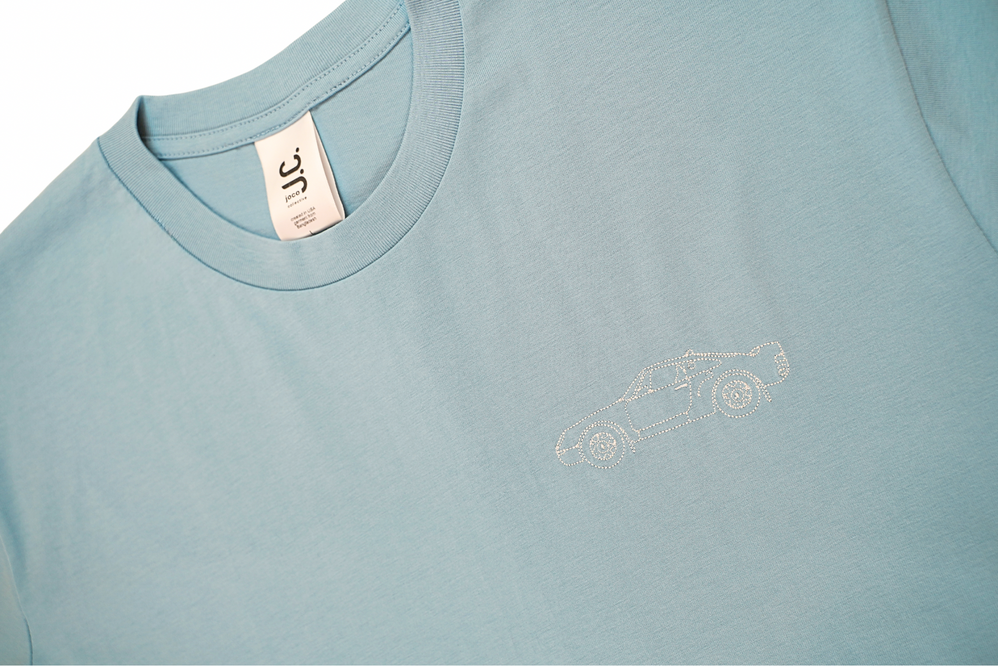 Celebrate classic heritage in laid-back comfort. Inspired by the legendary Porsche 959, this tee carries forward the spirit of innovation with a clean, understated embroidery detail—reminiscent of Porsche’s deviated style stitching interiors. The simple silhouette set against a soft pale blue that feels as effortless as weekend drives. Pair it effortlessly with jeans, layered under jackets, or styled solo for a clean, classic look.